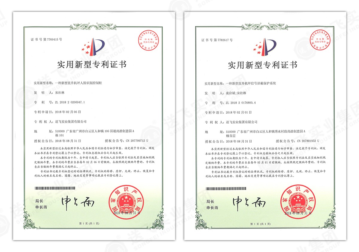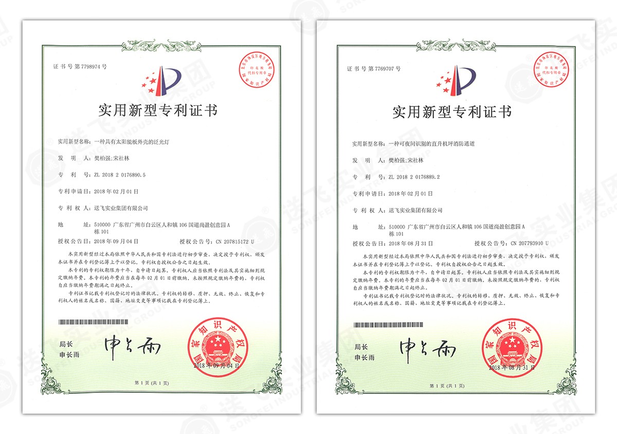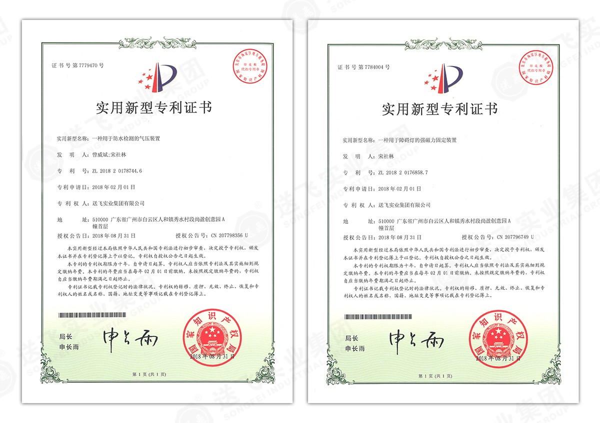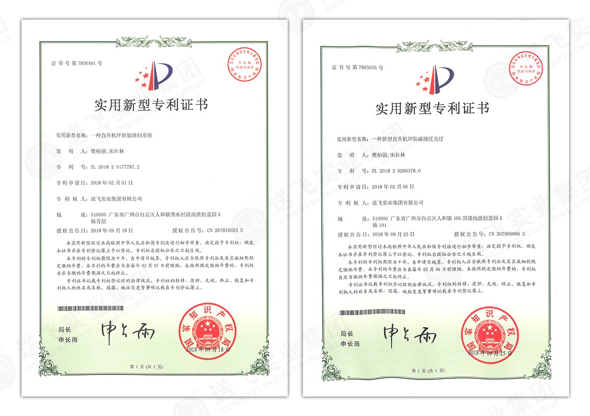 此次新下證專利有22個,其中發(fā)明專利2個,實用新型專利17個,外觀設計專利3個。專利技術涵蓋航空障礙燈、直升機坪等多項產(chǎn)品和業(yè)務。目前,送飛成功申請專利逾百項,填補了行業(yè)多項技術空白。